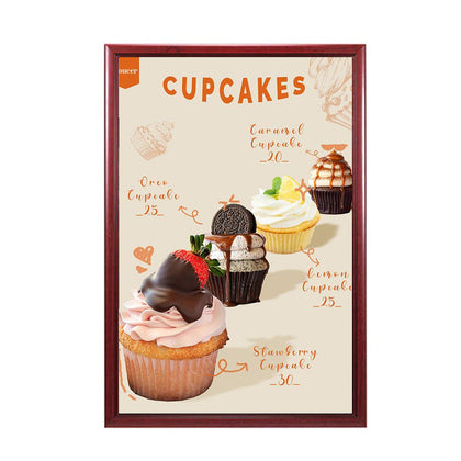 The patented, wall mounted restaurant menu frame is an ideal choice for restaurants that require the elegance and warmth of a wood profile that comes in 10 standard popular wood finishes for wide ranging interior decors, to compliment and enhance their restaurant’s interior design.