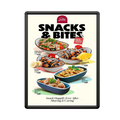 Economically priced, quick-changing, poster snap frames with radius corners allow you to effortlessly place and change your posters, signs, and advertisments.