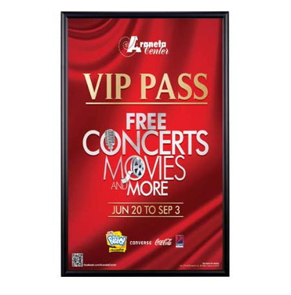 Aluminum Snap Frames 13x19 are the most popular changeable poster displays. Simplicity and low cost are the primary reason as well as offering the most popular 13 x 19 poster frame finishes, black, silver and gold that fit comfortably within numerous interior retail store decors. One 13 x 19 poster display or several 13x19 sign frames or thousands of 13x19 frames, “poster snaps” remains the favored choice for small and large businesses, retail stores, corporations, institutions and as a POP display signage fixture. Wall mount and snap open your 13x19 snap frame, update your 13 x 19 poster, and snap shut. That's it!