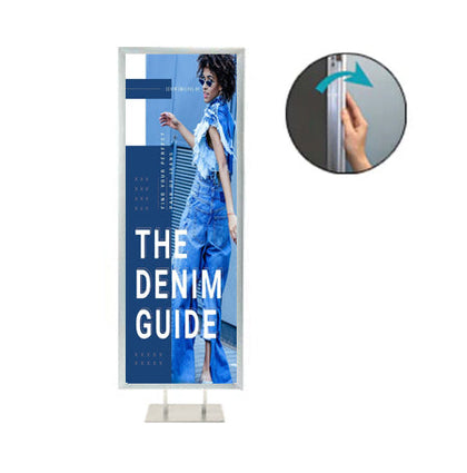 The Wide Face Poster SwingFrame has proven to be our most popular wall-mounted poster frame profile, with its simple, 1” slightly curved contemporary style metal frame designed for quick change functionality as well as its appealing presentation.