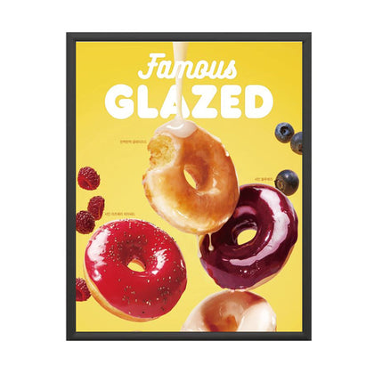 Aluminum Snap Frames 20x30 are the most popular changeable poster displays. Simplicity and low cost are the primary reason as well as offering the most popular 20 x 30 poster frame finishes, black, silver and gold that fit comfortably within numerous interior retail store decors. One 20 x 30 poster display or several 20x30 sign frames or thousands of 20x30 frames, “poster snaps” remains the favored choice for small and large businesses, retail stores, corporations, institutions and as a POP display signage fixture. Wall mount and snap open your 20x30 snap frame, update your 20 x 30 poster, and snap shut. That's it!