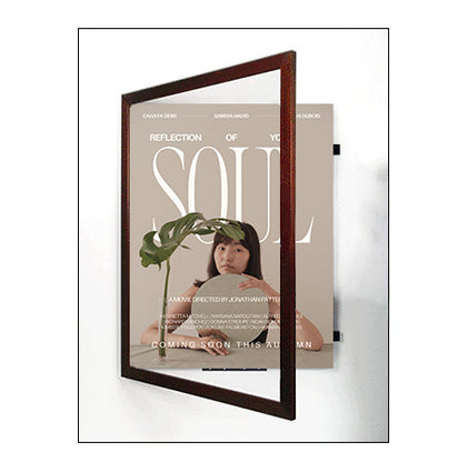 There's no other framing system like it. Our patented 24x36 poster frames, "SwingFrame" features hidden hinges and gravity lock. The beauty of the SwingFrame is that once it's wall mounted, you can't tell that it swings open. Just swing open. Place your 24x36 movie poster or other printed graphic insert. Swing Shut. That' it.