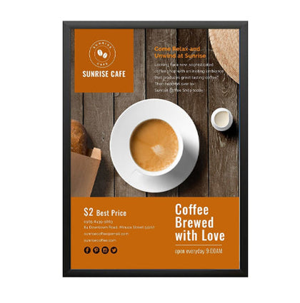 Economically priced, quick-changing, poster snap frames with radius corners allow you to effortlessly place and change your posters, signs, and advertisments.