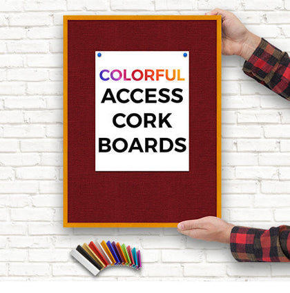 Don't' see a cork board frame size that meets your requirement? We can provide it. We build "Access Cork Boards" here in the USA, so if you need a specific custom cork board size, large or small, cork fabric color, metal or wood frame styles for your business, organization, or home, cork message board. Call Customer Service for More Info or Price Quotes and Discounts for Large Volume Orders.