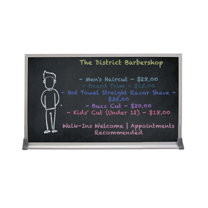 This value line Black Chalk Board has an attractive 1/2" wide satin aluminum trim border frame. The Open Face Chalk Board is a great way to brainstorm, post messages, or create advertisements. Easy and adaptable, these Chalk Boards make it simple to update and add to your school lessons, restaurant menus, business / at home notes, or advertisements.