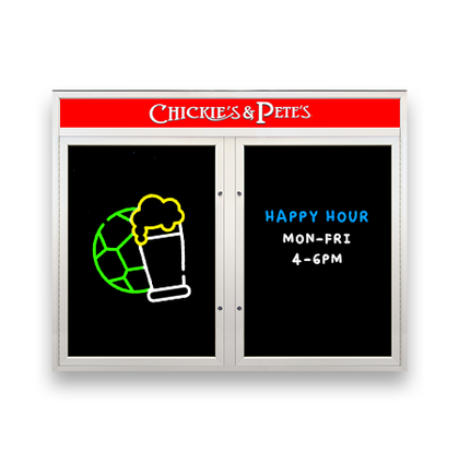 If your message display board needs to be visible both day, night, or in dimly lit areas, another model you can order is a lighted markerboard display case. It comes with a long-lasting fluorescent bulb or energy-efficient, long-lasting bright LED Lighting, with or without a message header. The illuminated wall-mounted display case is 3 1/8" deep.