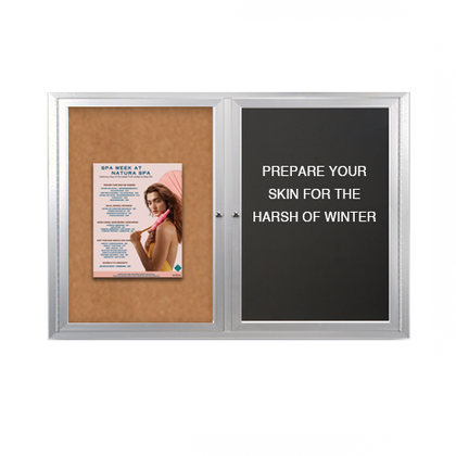 No two projects are the same. Your indoor letter board needs may be different then the needs of a designer, buyer or purchasing agent. That’s why we offer the range of styles and sizes including 1,2 and 3 door letter board display cases, letter boards with sliding glass doors, flat edge mitered, radius edge and rounded corners, Metal and wood case frame styles. We even offer a plastic enclosed letterboard display.
