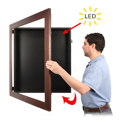 You can choose from various metal and wooden frame finishes to best complement other fixtures in your establishment or indoor décor. We offer metal finishes in satin silver and satin black with interior finishes in white, black, or satin brushed aluminum. Each metal frame looks clean and professional, fit for any indoor location like universities, libraries, museums, cultural centers, offices, or government buildings.