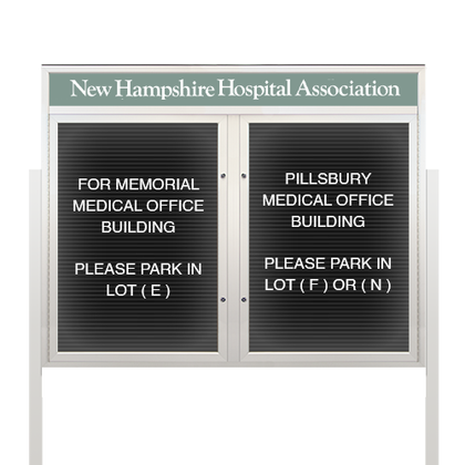 Personalize your outdoor letter board stand with a custom header. Many of our message centers feature a header panel that you can use to display your brand, school name, or any other printed message. Using a header is an excellent way to let viewers know who posts or what is posted in the display cases. We offer free printing for your heading in 3" capital black Helvetica lettering. You can also leave your header blank, a great option if you'd like to print your title elsewhere. Contact our customer service for more information about getting a logo or special colors and fonts printed on your header.
