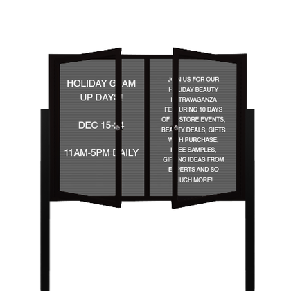 When it comes to getting your announcements noticed, height can increase the number of viewers of your sign. Our outdoor message centers with posts help you display your notices at heights passersby will see, even in crowded outdoor areas. Many of our outdoor letter boards include posts in sizes up to 10ft. These free standing announcement boards are hard to miss, thanks to their tall heights. Our message centers with posts include letter boards with single or double posts so you can select a model that best fits your outdoor ground space. We also offer double sided message centers with posts. A double-sided free standing announcement board lets passersby read your information no matter which way they're facing.