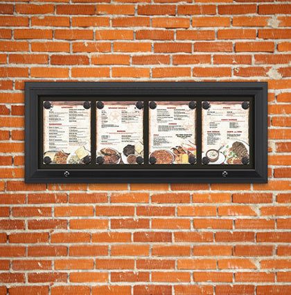Outdoor Menu Display Cases are wall-mounted and free-standing throughout the country, from small local restaurants to national restaurant franchises and corporate chains. Although we offer and distribute numerous collections of menu boxes, we also customize many menu displays to fit and complement your location needs.