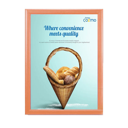 The Super Wide-Face Poster Frame presents a smart looking poster display that can be used in any interior environment that needs easy to change metal poster display frames with a super bold frame style.