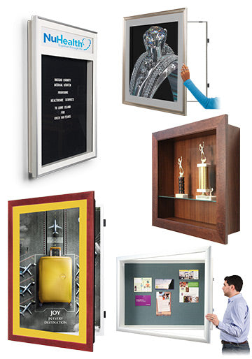 The SwingFrame system was designed to be adaptable to numerous product categories by utilizing the swing-open feature. Some of these display products include: