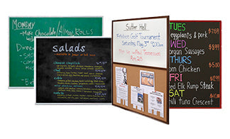 If you're looking for an eye-appealing indoor floor standing display, take a look at the "SwingStands." These are our SwingFrame floorstands designed with an elegant, heavy-duty post. With the SwingFrame system, we can assemble freestanding Sign Holders; Letter Board Stands, Corkboard and Bulletin Board Stands, Poster Stands, Standing Enclosed Dry Erase Boards, and Enclosed Marker Boards, locking Whiteboards, and Blackboards.