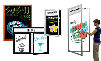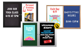 Message Centers & Information Boards: Keep your customers, staff, and the public informed with eye-catching and easy-to-update outdoor message centers and wall-mounted or free-standing information boards featuring cork bulletin boards, markerboards, whiteboards, blackboards, and changeable letter boards.
