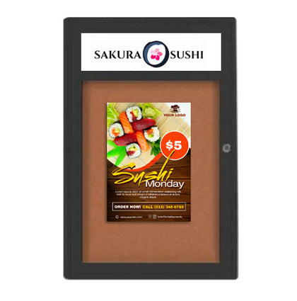 Outdoor Enclosed Bulletin Boards with Header 8.5 x 11 (Single Door)