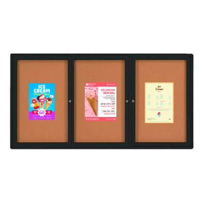 3 Door Radius Edge Enclosed Cork Bulletin Boards: Lockable and Secure