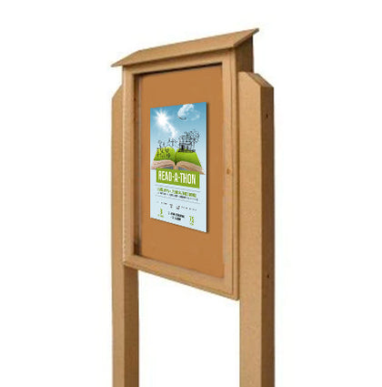 27" x 40" Viewable Area Outdoor Message Center Cork Board with Header | Single Door with Posts