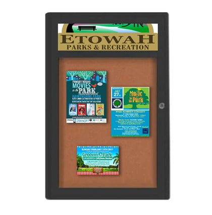 Outdoor LED Lighted Enclosed Bulletin Boards with Header (Single Door)