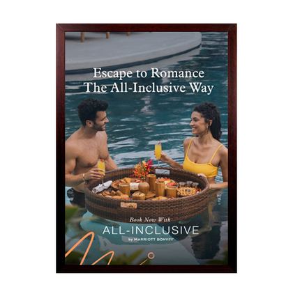 SwingFrame's patented, swing-open, 27x41 picture frame has always used the finest quality custom metal & wood picture frame profiles . Any of our SwingFrame Poster Display Frame Styles can be built as a standard picture frame for posters 27x41. Just like any other traditional wall picture frame, the graphic loads from the back of the metal frame or wood poster frame and would require the 27x41 poster frame to be removed from the wall to change your photos or graphics.