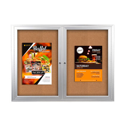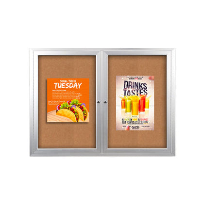 Indoor 42 x 32 Enclosed Bulletin Cork Board 2-Door | Wall Mount Metal Display Case - 4 Finishes