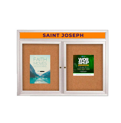 Enclosed Indoor Enclosed Bulletin Boards 42 x 32 w Message Header + Radius Edge 2 DOOR