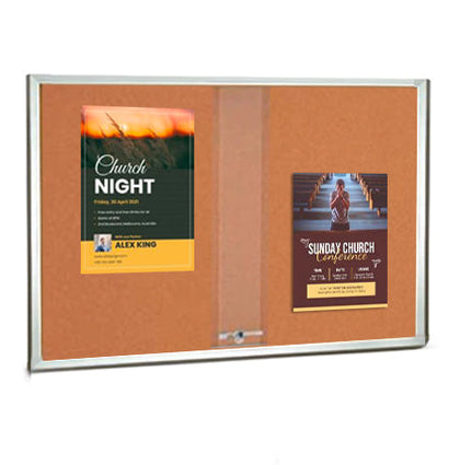 72 x 36 Indoor Enclosed Bulletin Cork Boards with Sliding Glass Doors