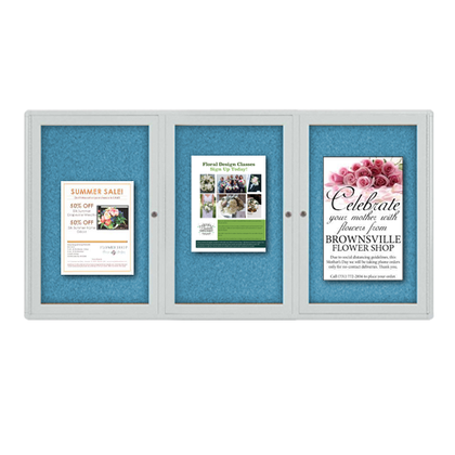 Indoor Enclosed Bulletin Boards 72 x 36 with Rounded Corners (3 DOORS)