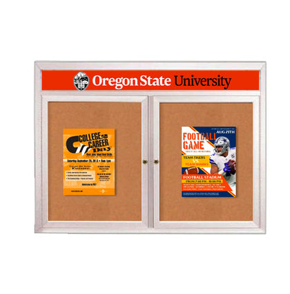 Enclosed Indoor Enclosed Bulletin Boards 72 x 36 w Message Header + Radius Edge 2 DOOR