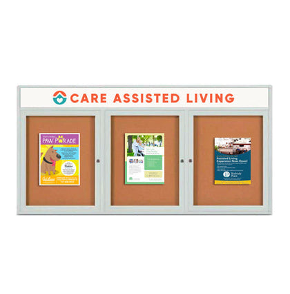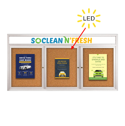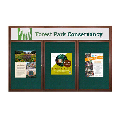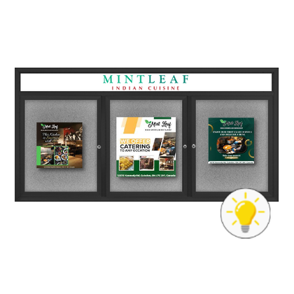 Enclosed Indoor Bulletin Boards 72 x 36 with Header & Lights (Radius Edge) (3 DOORS)