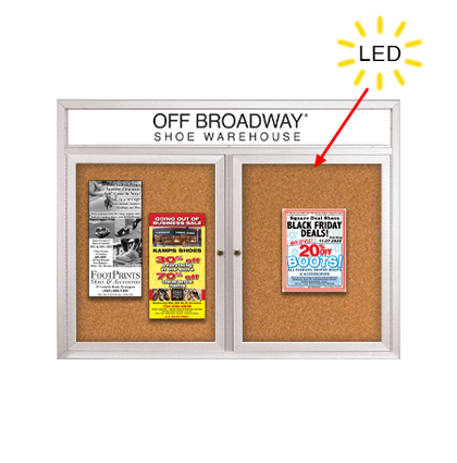 72 x 36 Enclosed Outdoor Bulletin Boards with Lights (2 DOORS)