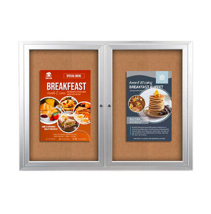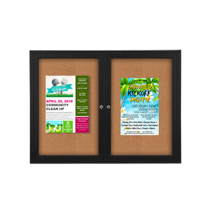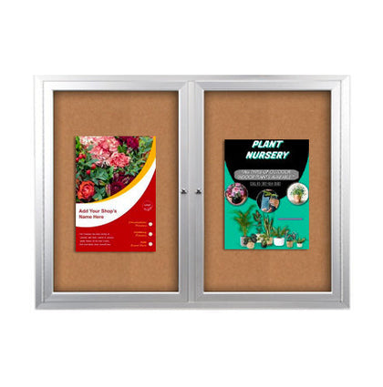 All-Weather 72x36 Enclosed Outdoor Cork Bulletin Board Display Case, Two Door with Radius Edge Cabinet Corners | Four Metal Finishes