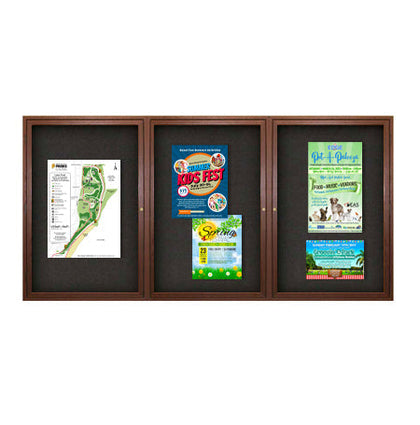 72 x 36 WOOD Indoor Enclosed Bulletin Cork Boards with Message Header (3 DOORS)