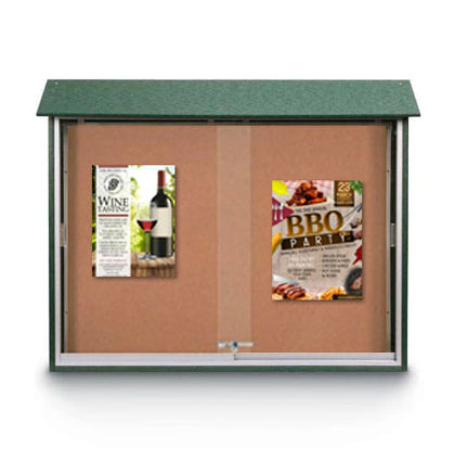 60 x 40 Outdoor Message Center Cork Bulletin Board with Posts | Double Doors Information Boards, Eco-Design Faux Wood