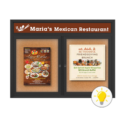 Extra Large 40 x 60 Indoor Enclosed Bulletin Board Swing Cases with Lights (Radius Edge)