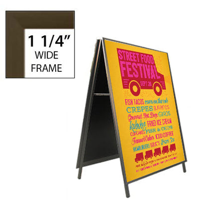 Whatever the application, these oversized, mitered, high quality, front-loading "SwingSnap" wood poster display frames make a popular poster display and sign holder, widely used for trade shows, exhibits, banks, and as store signage fixtures.