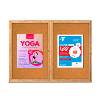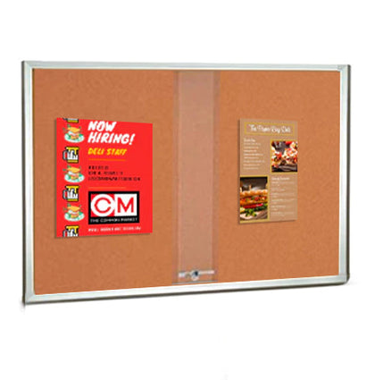 Indoor Enclosed Bulletin Cork Boards 72 x 30 with Sliding Glass Doors (with RADIUS EDGE)