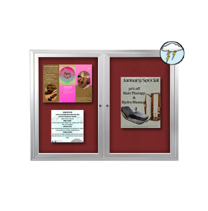 Enclosed Outdoor Bulletin Boards 72 x 30 with Interior Lighting and Radius Edge (2 DOORS)