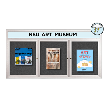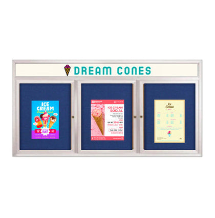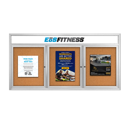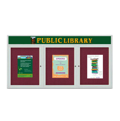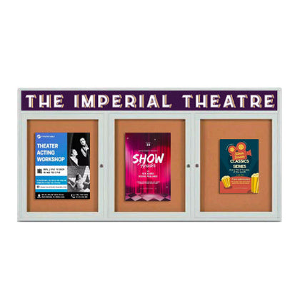 Enclosed Outdoor Bulletin Boards 72" x 30" with Message Header (3 DOOR)