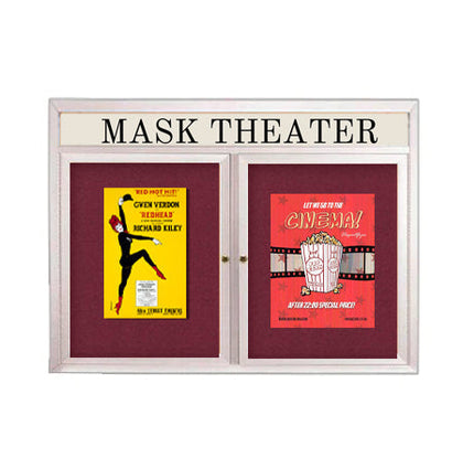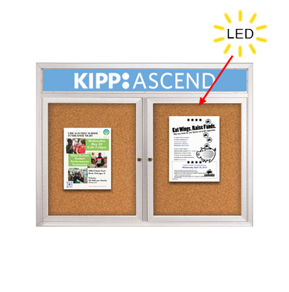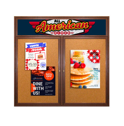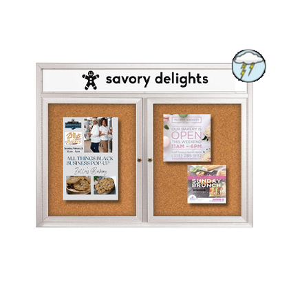 • 72x30 Bulletin Board 2 Door Lighted + Header - For Indoors Only