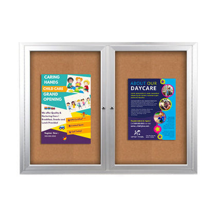 Enclosed 2-Door Outdoor Combo Board 72x30 | Cork Bulletin Board & Dry Erase Marker Board