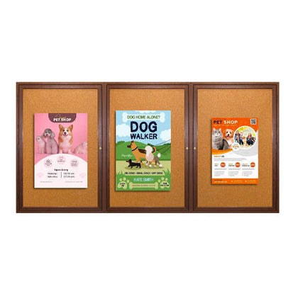 72 x 30 WOOD Indoor Enclosed Bulletin Cork Boards (3 DOORS)
