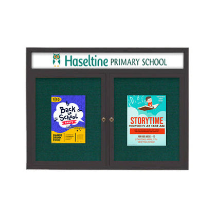 72 x 30 Enclosed Outdoor Bulletin Boards with Header & Lights 2 DOOR