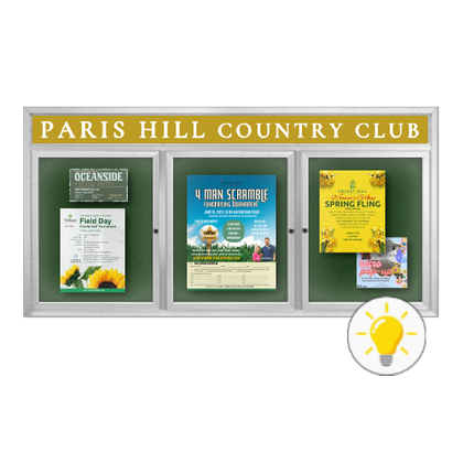 Enclosed Outdoor Bulletin Boards 72 x 30 with Interior Lighting and Radius Edge (3 DOORS)