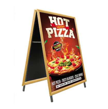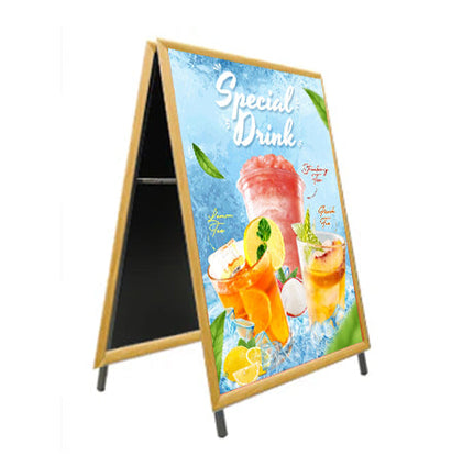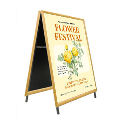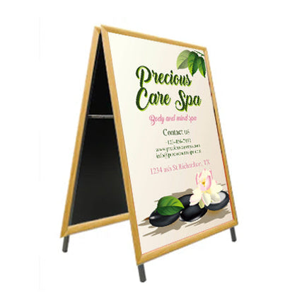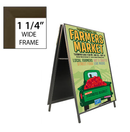 A-Frame 24x36 Sign Holder with Faux Wood Snap Frame 1 1/4" Wide Profile | Snap Open Quick-Change