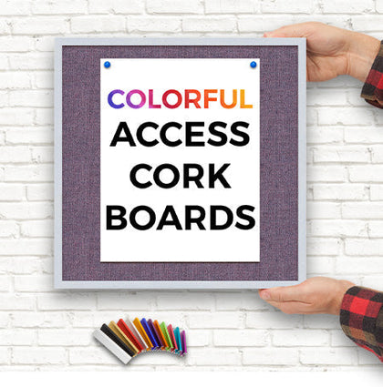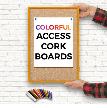 Don't' see a cork board frame size that meets your requirement? We can provide it. We build "Access Cork Boards" here in the USA, so if you need a specific custom cork board size, large or small, cork fabric color, metal or wood frame styles for your business, organization, or home, cork message board. Call Customer Service for More Info or Price Quotes and Discounts for Large Volume Orders.
