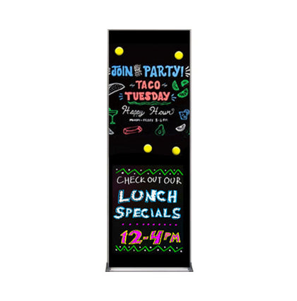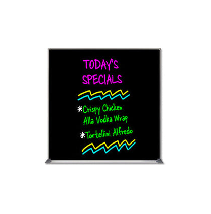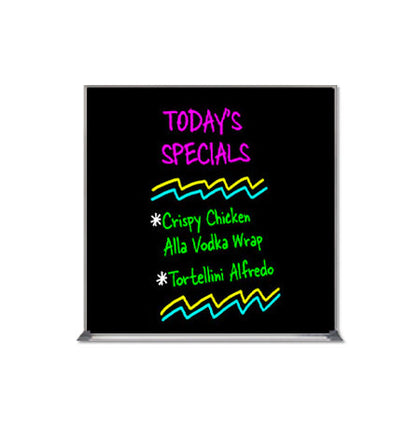 These Open Face Message Blackboards use colorful Florescent Wet Erase Markers to help you create eye-catching restaurant menus, business office and home notes, brainstorming and classroom lessons, product and service announcements –All kinds of info, notices and messages.