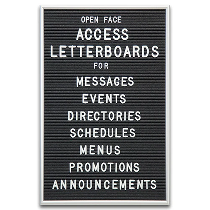 Classic Metal Framed Access Letterboards™ are not the typical changeable letter board frame style you can buy from other online stores or from your office supply store. Our Access Open Face Letterboards are offered with a variety of popular metal finishes to enhance wide-ranging interiors for businesses, institutions, and organizations as well as for home display use.