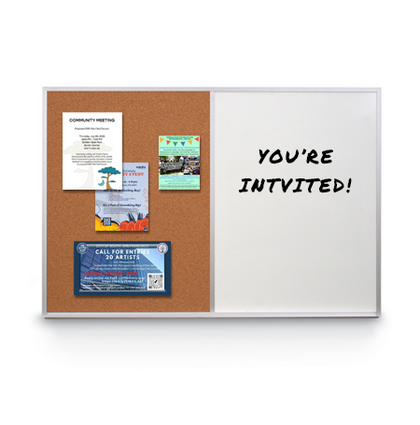 Value-Line Combo Boards with Silver Trim Aluminum, Cork and Dry Erase Boards are Multi-Purpose Message Boards that Feature Two Display Board Panels; Porcelain Steel Magnetic Dry Erase and Cork Board. These Open Face Info Boards are Separated by a Divider and Can Be Wall Mounted.