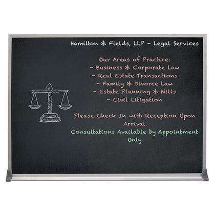 A chalkboard is a classic addition to any space, and with our selection, you can choose a style that suits your needs. The value options feature silver or wood frames; the silver metal frames measure ½ inch, and the wood is 1 inch wide. Our wood frames come in cherry, light oak, and walnut. Our magnetic options allow you to conveniently attach your materials to the porcelain on steel board surface with magnets. Factory-installed hangers allow you to mount the chalkboard portrait or landscape.